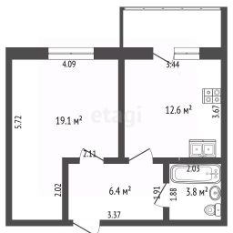 43 м², 1-комн., 2/5 этаж