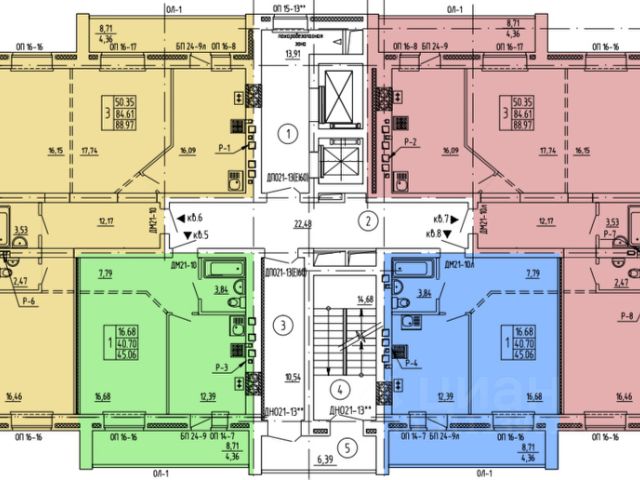Комнаты на разные стороны.