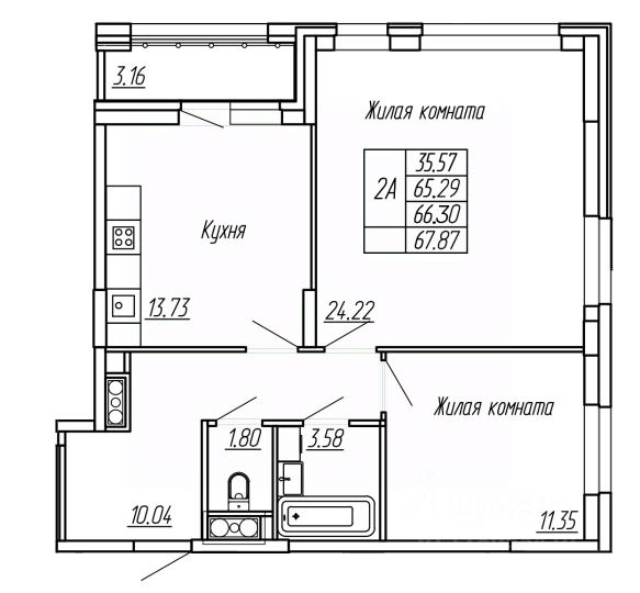 Санузел раздельный, просторная ванная комната, продуман каждый кв. метр.