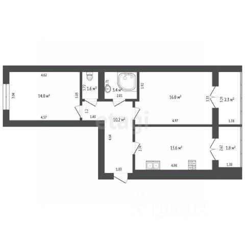 Санузел раздельный, просторная ванная комната, продуман каждый кв. метр.