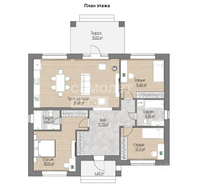 Арт. 105556831 Подходит под сельскую ипотеку - 3%!!! Станьте владельцем очаровательного коттеджа в коттеджном посёлке Медовый идеальный выбор для тех, кто мечтает о покое и комфорте вдали от городского шума, всего в десяти минутах пути до оживленного центра! Преимущества месторасположения: За поворотом на посёлок Краснооктябрьский вы окажетесь в тихом уголке деревни Нолька, где ваш новый адрес будет олицетворять спокойствие и благополучие. Рядом находятся магазины и остановка общественного транспорта, делая проживание здесь удобным и комфортным. Реализуйте свою мечту о доме: Обретите счастье семейной жизни вместе с нами! Предлагаемый дом уже зарегистрирован и готов к продаже, подходит под программу семейной ипотеки с низкой ставкой 6%. Это шанс стать обладателем собственного жилья, потратив минимум средств. Высококачественное строительство: Дом построен на крепком фундаменте из монолитной бетонной плиты класса М250, стены возведены из экологичного керамического блока, утеплённых и покрытых качественным облицовочным кирпичом. Надёжная кровля защитит ваше жилище от любой непогоды. Всё необходимое для комфортного проживания: Ваше новое жилище оснащено всеми необходимыми коммуникациями: Электричество трёхфазное подключено и заведено в дом-обеспечивает стабильную работу бытовой техники. Есть возможность увеличения мощности до 15 кВт. Автономное водоснабжение через собственную скважину, расположенную прямо в доме. Централизованное газовое отопление с помощью современного газового котла гарантирует тепло и уют даже в холодные зимние дни. Две выгребные ямы обеспечивают удобную канализационную систему. По всему дому установлены теплые водяные полы. Готовность к финишному ремонту: Ваши новые апартаменты готовы к внутренней отделке: Поверхность полов выполнена с использованием полусухой стяжки. Стены идеально выровнены качественной цементно-песчаной штукатуркой. Инженерные коммуникации аккуратно спрятаны, создавая привлекательный интерьер. Оконные конструкции изготовлены из качественных пластиковых профилей с двухкамерными стеклопакетами, сохраняющих тепло. Металлическая входная дверь оснащена термоизоляционным покрытием. Простор и удобство планировки: Планировка разработана с учетом потребностей каждой семьи: Уютная прихожая встречает вас теплотой и радушием. Три просторные комнаты подарят каждому члену семьи личное пространство. Объединённая кухня-гостиная создает приятную атмосферу домашних посиделок. Двойной санузел значительно упрощает бытовые заботы. Закрытая веранда позволяет наслаждаться природой и чистым воздухом. Свяжитесь с нами сейчас, чтобы увидеть своё будущее жилище собственными глазами! Узнайте подробности, посетив наш замечательный посёлок, расположенный в живописной местности неподалёку от крупного города. Здесь вы создадите собственный островок гармонии и семейного счастья!