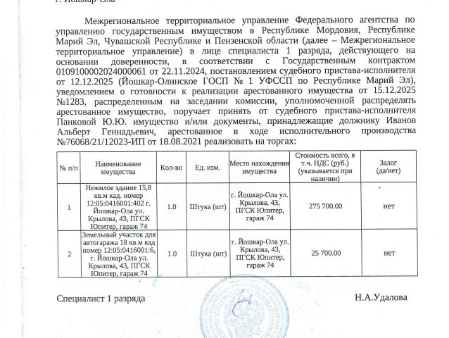 При осмотре разумный торг. Полный пакет документов готов к продаже. Продам гараж на проспекте Ленинский в городе Йошкар-Ола.