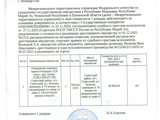 Арт. 98979072 Самолет Плюс предлагает к покупке новый гараж в центре Медведево, от надежного застройщика "Казанский Посад". Проем ворот 3*3 метра, площадь 23кв.м.(3.5м/6.5м). Подойдет для любого авто!! В стоимости секционные ворота с электроприводом (работает с брелока), электрощитовая, освещение и разводка электрики. Все перекрытия- плита, стяжка пола. Территория заасфальтирована, закрытого типа ,на въезде будет установлен шлагбаум. Видеонаблюдение и уличное освещение на всей территории. Удобная локация!! ЕСТЬ ВОЗМОЖНОСТЬ ПРИОБРЕТЕНИЯ НЕСКОЛЬКИХ ГАРАЖЕЙ, В ТОМ ЧИСЛЕ СМЕЖНЫХ!!! Наша компания гарантирует юридическую чистоту сделки, что является важным фактором при покупке недвижимости. Если у вас есть еще вопросы или вы хотите записаться на просмотр объекта, позвоните нам с 9:00 до 21:00 Гараж в республике Марий Эл.