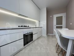 "Французские" (панорамные) окна из кухни на лоджию, обеспечивающие максимальное естественное освещение и эстетичный внешний вид. За счет обилия света и сформированных рамами вертикальных линий от пола до потолка кухня кажется выше и просторней.