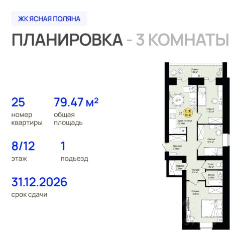 Продаётся 2-комнатная квартира в сданном доме (Героев Специальной Военной Операции, 8 (Позиция 19.1 2 этап)), срок сдачи: III-кв. 2025, общей площадью 65.6 кв.м., на 8 этаже. Жилой комплекс "Ясная Поляна" — это особенная, яркая и интересная жизнь, наполненная приятными впечатлениями и незабываемой атмосферой. Здесь вы по-настоящему захотите жить. Помимо самих многоквартирных домов здесь планируется построить: Две школы; Три спортивных стадиона; Шесть детских садов; Поликлинику; 2 торговых центра. Здесь будет располагаться вся необходимая для комфортной и полноценной жизни инфраструктура.