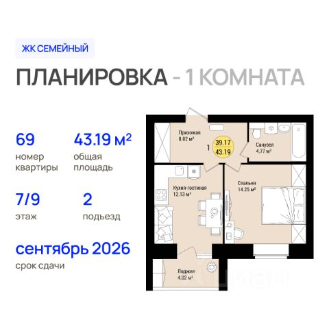 Продаётся 1-комнатная квартира в строящемся доме (Позиция 9 (1 этап)), срок сдачи: III-кв. 2026, общей площадью 30.5 кв.м., на 2 этаже. Новый жилой комплекс "Семейный" от застройщика "Росагрострой" расположен по адресу: Республика Марий Эл, г. Йошкар-Ола, с. Семеновка, ул. Молодежная. "Семейный" - это комплекс из 5 многоквартирных домов на 1500 квартир. На обширной территории ЖК запланировано построить детский сад на 320 мест и школу на 550 мест. Для возведения домов используется силикатный кирпич, предусмотрено остекление лоджий. На официальном сайте жилого комплекса открыты продажи квартир в первом доме. Продуманные планировки в "Семейном" включают евроквартиры с просторными гостиными, а также гардеробными. Высота потолков 2.7 м. На территории ЖК запроектирована вместительная парковка на 3000 мест. Для прогулок во дворе будет обустроена спортивная и детская площадки, а также места отдыха для всей семьи. Купить квартиру в городском округе Йошкар-Оле республики Марий Эл.