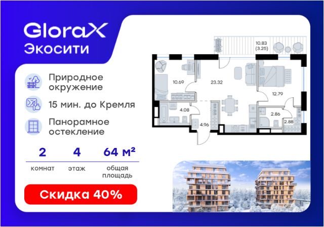 Продается 2-комн. квартира на 4-м этаже в строящемся проекте премиум-класса GloraX Premium Экосити. Общая площадь лота составляет 64,83 кв. м, из которых 23,48 кв. м отведено под жилую и 23,32 кв. м под кухонную зону. Номер квартиры - 19 GloraX Premium Экосити это роскошь, вдохновленная природой. Преимущества, которые изменят вашу жизнь: • Собственная премиальная инфраструктура: Всё для комфорта и досуга, не выходя за территорию комплекса • Безопасность 24/7: Закрытая территория, видеонаблюдение, система "Умный дом" • Безбарьерная среда: Забота о каждом жителе, независимо от возраста и физических возможностей. • Изысканные дизайнерские холлы: Эстетика и комфорт с первых шагов в вашем доме. • Удобные колясочные в каждой секции: Больше пространства в вашей резиденции. • Квартиры в черновой отделке: Индивидуальные пространства для комфортной жизни. • Вдохновляющее благоустройство: Вдохнолвленные хвойным окружением: пешеходные и спортивные маршруты, детские площадки для разных возрастов, площадки для отдыха взрослых и зеленые кабинеты, озеро с плейхабом, теннисная площадка, площадка для мини-гольфа и многое другое всё для активной и насыщенной жизни. • Забота о будущем: Современные детский сад и школа с центром допольнительного образования рядом с кварталом. GloraX Premium Экосити это масштабный проект премиум-класса, созданный для тех, кто ценит комфорт, безопасность и качество жизни. Расположенный в Аракчино Кировского района, он гармонично сочетает в себе близость к природе и развитую инфраструктуру. Здесь каждый элемент создан для вашего удобства: от функциональных планировок до благоустроенной территории. GloraX Premium Экосити это пространство, где вы сможете наслаждаться каждым днем, зная, что сделали правильный выбор. GloraX Premium Экосити - это роскошь, вдохновленная природой. Цена указана при 100% оплате или стандартной ипотеке. Узнайте подробности в Отделе продаж.