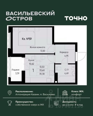 ЖК "Васильевский остров" — масштабный проект ТОЧНО в Казанской агломерации. Просторная территория 88 Га спроектирована для комфортной жизни: озеро с набережной и пляжем, каток, зелёные маршруты. В проекте комплекса — школа на 1 224 места, 2 детских сада на 680 мест, детская и взрослая поликлиники, фитнес-центр с бассейном, термальный комплекс, фермерский рынок, магазины, кафе и рестораны.