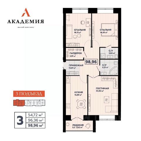 Площадь жилых комнат 15,0/13,2 кв.м соответственно, кухни - 8,1 кв.м. Прихожая начинается с просторного коридора - 7,9 кв.м.