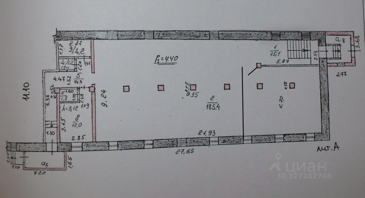 Помещение удобно зонируется: на входе обособленное помещение площадью 54 кв.м. и основной зал около 130 кв.м.