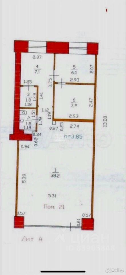 высота потолков 3,8.