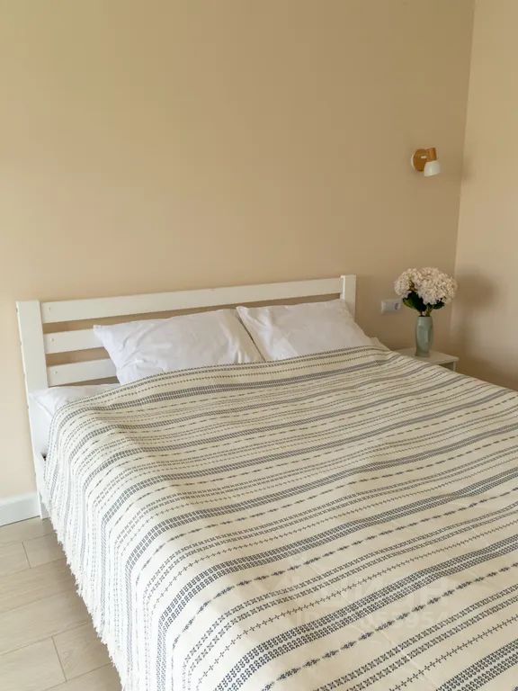 В апартаментах имеется большая двуспальная кровать с ортопедическим матрасом и удобный новый раскладной диван-кровать.