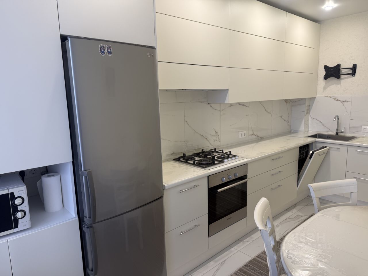Сдаётся просторная трёхкомнатная квартира с евроремонтом в современном кирпичном доме, построенном в 2020 году. Общая площадь квартиры — 90 кв. м, кухня — 15 кв. м. Квартира находится на 9-м этаже 10-этажного здания, поэтому из окон открывается приятный вид как на улицу, так и во двор. Высота потолков — 2,7 метра, что добавляет простора и света.
