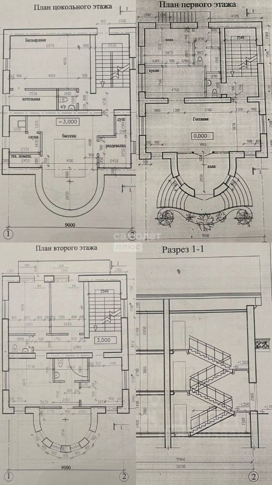 На цокольном этаже- бильярдная комната, техническая зона, а также сауна и бассейн.