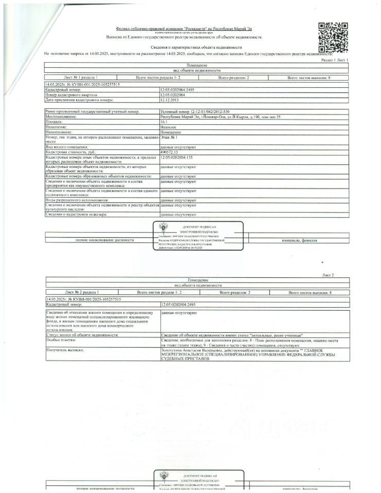 Помещение, площадь 16,1 кв.м., кадастровый номер 12:05:0202004:2495, расположено по адресу: Республика Марий Эл, г. Йошкар-Ола, ул. Й. Кырли, д. 19 Б, пом. поз. 35, магазин "Том и Джери", принадлежащее Сметанкиной О.Ю.