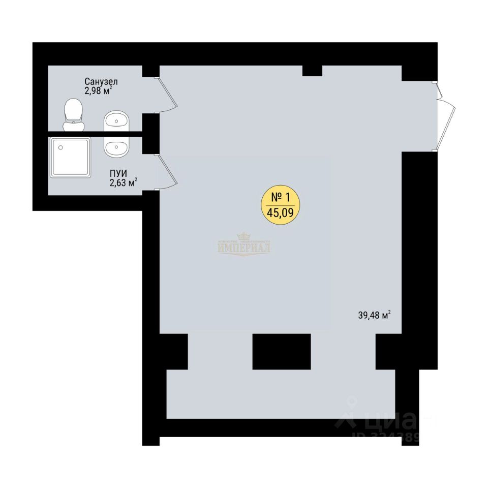 Общая площадь45,09 м²