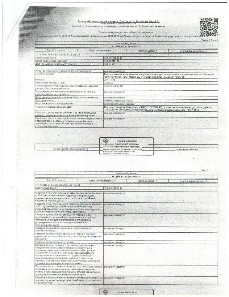 Земельный участок площадью 26 кв.м, кадастровый номер: 12:05:0102001:39, нежилое здание площадью 24.2 кв.м, кадастровый номер 12:05:0102001:812, расположенные по адресу: Респ. Марий Эл, город Йошкар-Ола, потребительский гаражно-строительный кооператив "Мышино", гараж 41, должник Аюпова Гузалия Гаязутдиновна