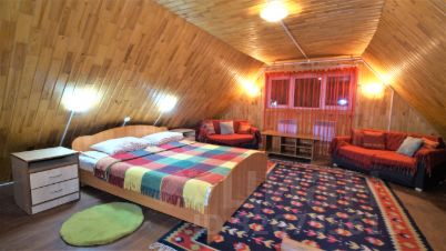 Также есть гриль-беседки, одна из них 2-х этажная 240 м2, вместимость до 100 человек, спортивная площадка 200 м2, для игр в волейбол и в минифутбол, 6 велосипедов, снегоход и детским городком, площадью 50 м2, с горкой, качелями, сказочным домиком "Мельница" и скамейками для наслаждения Красотой.