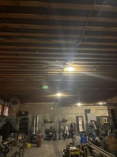 Отопление дровяное. Наличие водопровода. Высота потолков 3,7 метра. Наличие кран-балки 1,5 тонны (требуется монтаж)