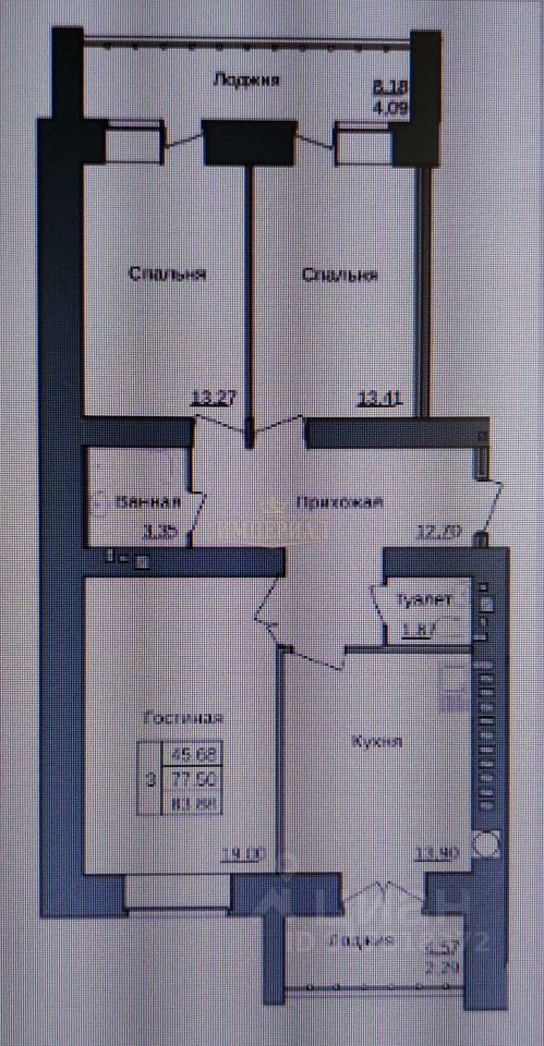 Квартира с просторной кухней почти 14 кв.м , с комнатами на разные стороны, с двумя лоджиями!