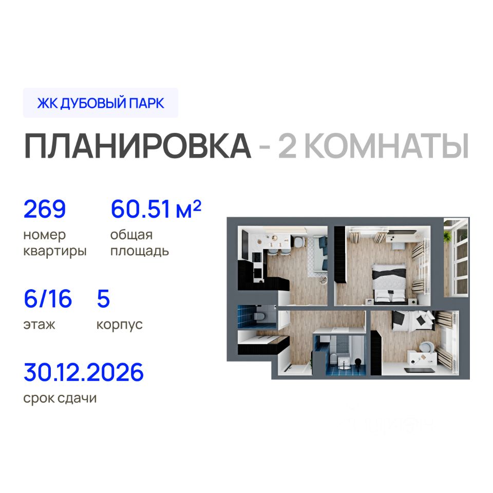 Продаётся 2-комнатная квартира в строящемся доме (Позиция 2), срок сдачи: IV-кв. 2026, общей площадью 60.51 кв.м., на 6 этаже. ЖК "Дубовый парк" расположен в микрорайоне "Нагорный", всего в нескольких шагах от парка "Сосновая роща" и в непосредственной близости от центральных артерий города. Комплекс представляет собой уникальное архитектурное решение, вдохновлённое традицией марийского костюма.