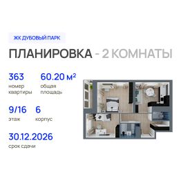 Продаётся 2-комнатная квартира в строящемся доме (Позиция 2), срок сдачи: IV-кв. 2026, общей площадью 60.2 кв.м., на 9 этаже. ЖК "Дубовый парк" расположен в микрорайоне "Нагорный", всего в нескольких шагах от парка "Сосновая роща" и в непосредственной близости от центральных артерий города. Комплекс представляет собой уникальное архитектурное решение, вдохновлённое традицией марийского костюма.