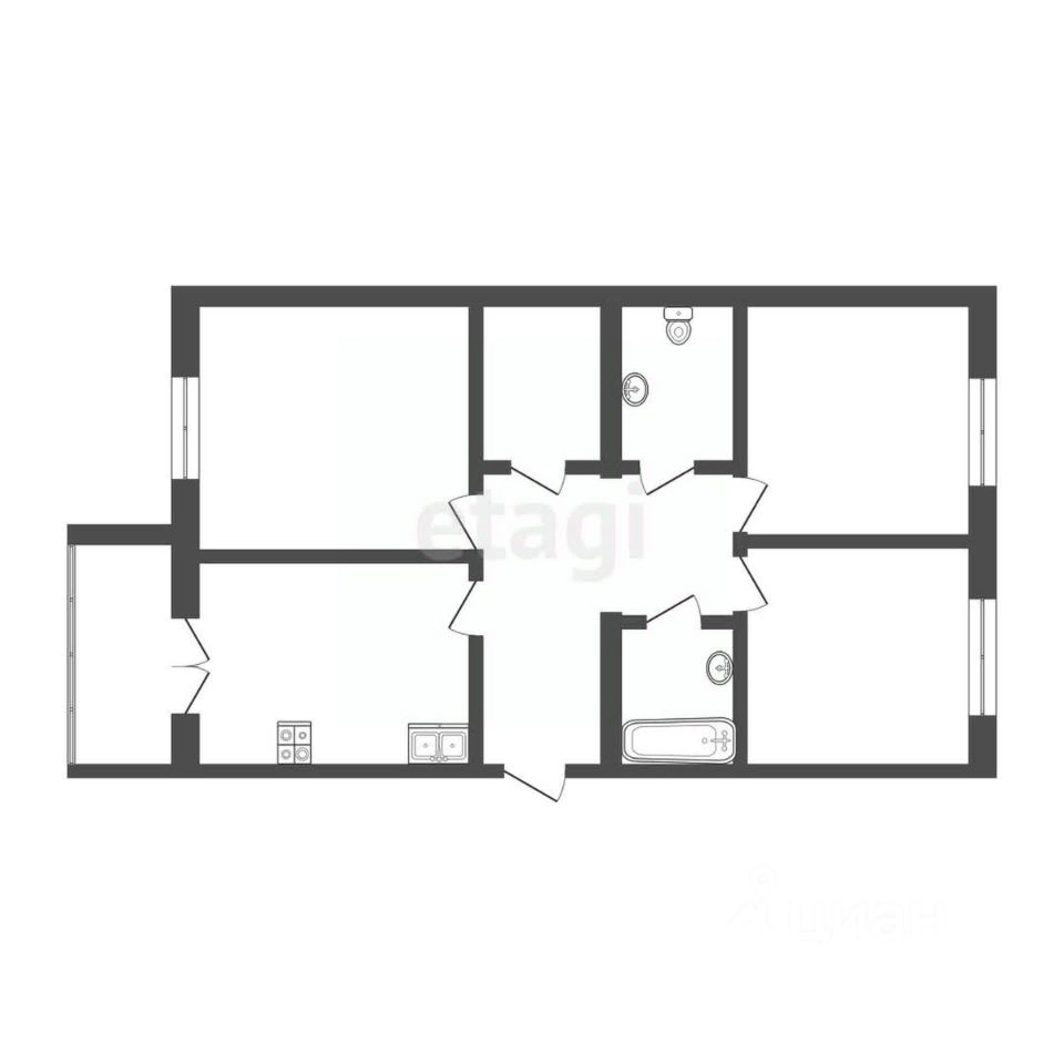 Все три комнаты изолированы, что гарантирует приватность и комфорт для всех жильцов.