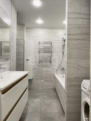 Квартира имеет прекрасную планировку, просторная кухня гостиная, две изолированные спальные комнаты. Организованны отдельные места хранения. Санузел раздельный, в ванной комнате установлены акриловая ванная и душевая система.