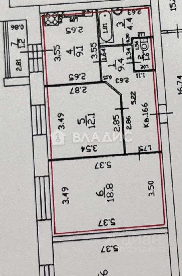 56,6 м²