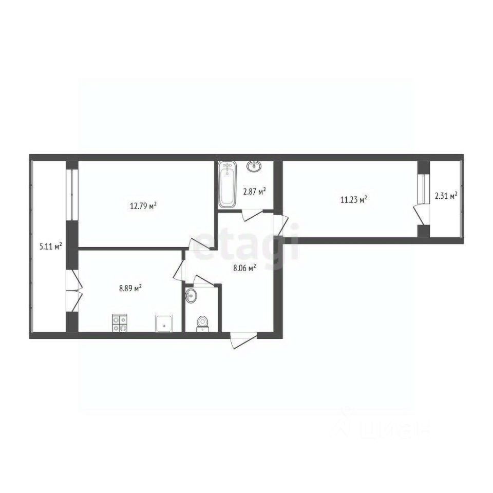 Федеральное агентство Этажи предлагает вашему вниманию двухкомнатную квартиру, распашной планировки площадью 52.71 квадрат. Дом сдаётся в конце 2025 года.