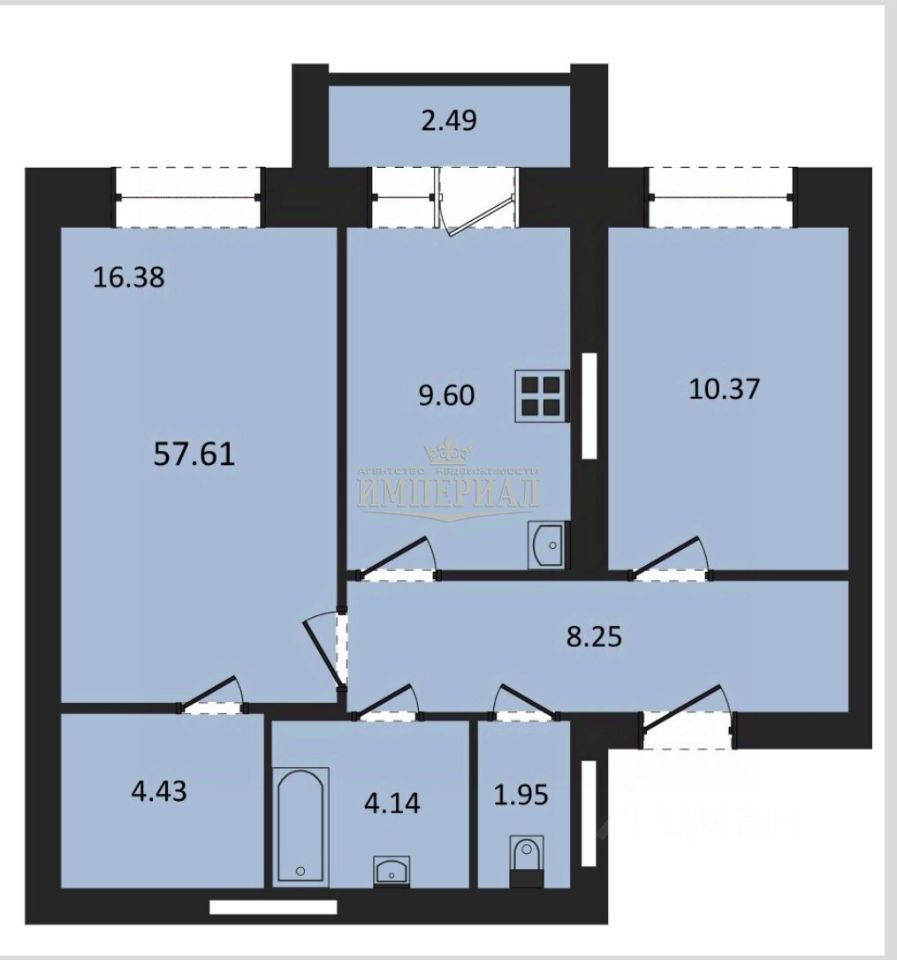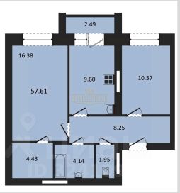 Площадь квартиры: от 57,61 м².