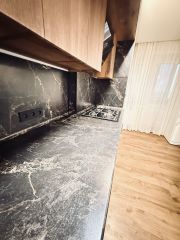 -Установлен качественный кухонный гарнитур , на кухне остается встроенная техника, стол, стулья , холодильник. Кухня 12 кв.м, поквартирное отопление. Коммунальные платежи в районе двух с половиной тысяч по всем квитанциям!!!