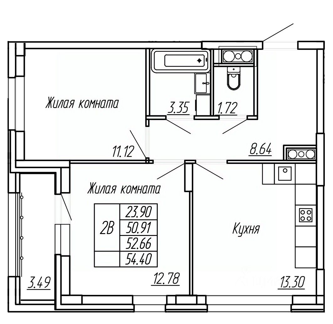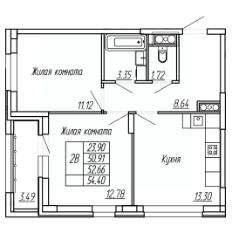 Продается 2-комн. кв-ра площадью 52.66 кв.м на 12 этаже 16 этажного монолитно-кирпичного дома в ЖК Два Капитана от ГК "Ваши окна". Продажа от застройщика! Без посредников!