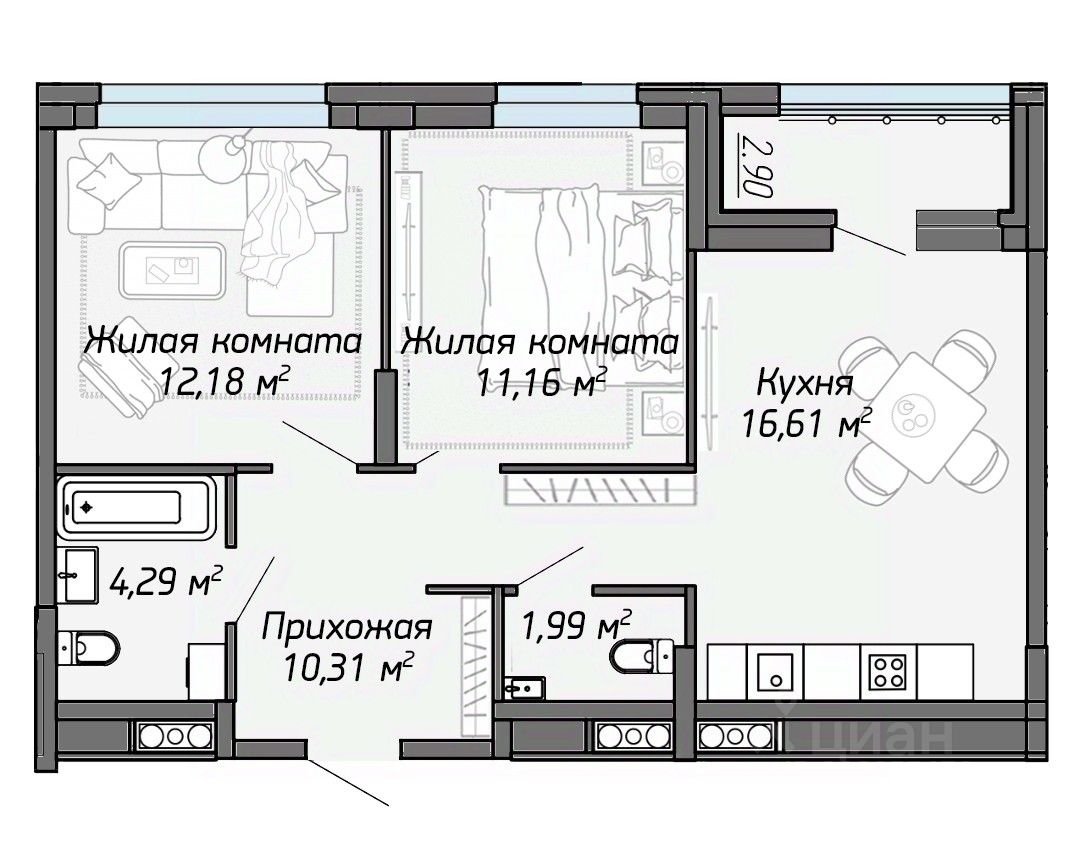 Продается 2-комн. кв-ра площадью 57.99 кв.м на 16 этаже 16 этажного монолитно-кирпичного дома в ЖК Два Капитана от ГК "Ваши окна". Продажа от застройщика! Без посредников!