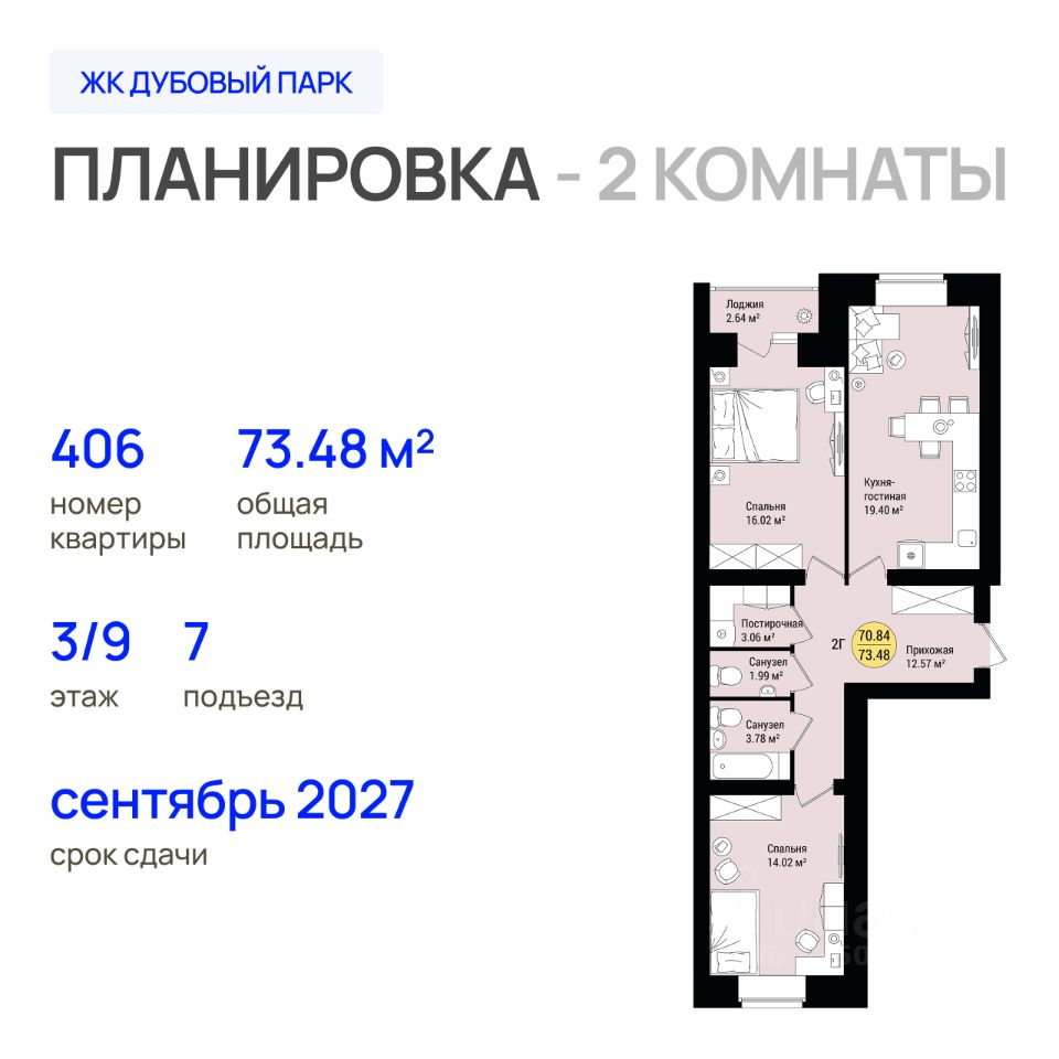 Продаётся 2-комнатная квартира в строящемся доме (Позиция 3), срок сдачи: IV-кв. 2027, общей площадью 73.48 кв.м., на 3 этаже. ЖК "Дубовый парк" расположен в микрорайоне "Нагорный", всего в нескольких шагах от парка "Сосновая роща" и в непосредственной близости от центральных артерий города. Комплекс представляет собой уникальное архитектурное решение, вдохновлённое традицией марийского костюма.