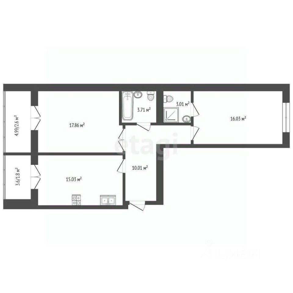Квартира подходит для покупки по льготным ипотечным программам.