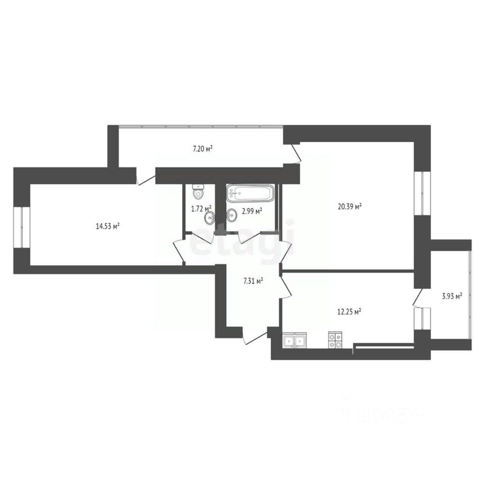 2 лоджии, 1 балкон