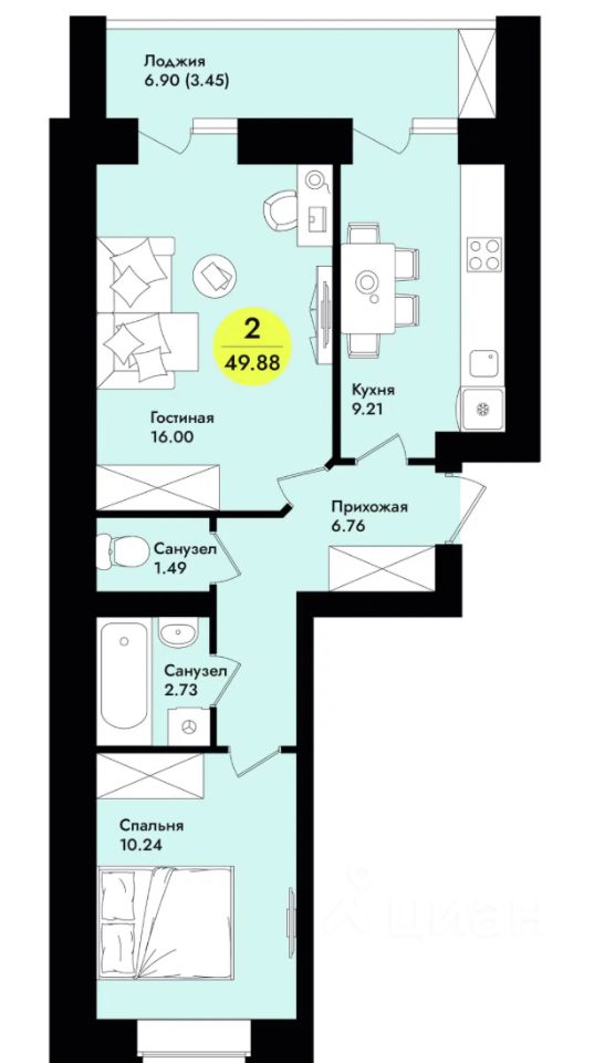 49,9 м²