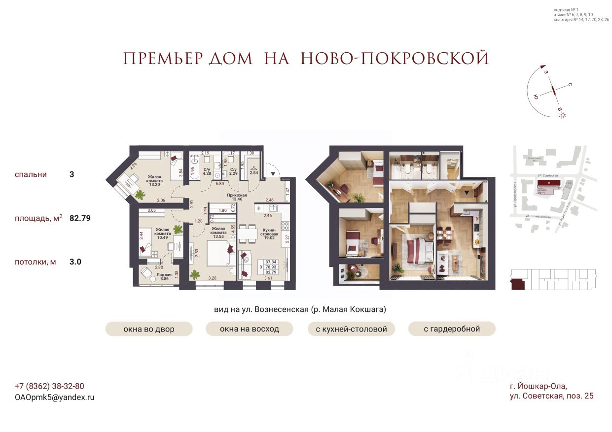 Продаётся 3-комнатная квартира в строящемся доме (Позиция 25), срок сдачи: III-кв. 2028, общей площадью 82.79 кв.м., на 6 этаже. Премьер-дом "5 звезд на Ново-Покровской" - новый проект компании "ПМК-5", расположенный по адресу: Марий Эл, г. Йошкар-Ола, ул. Советская.