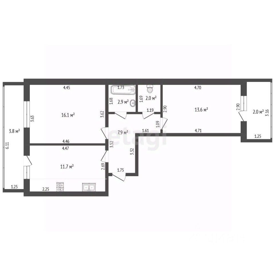 Общая площадь65,8 м²