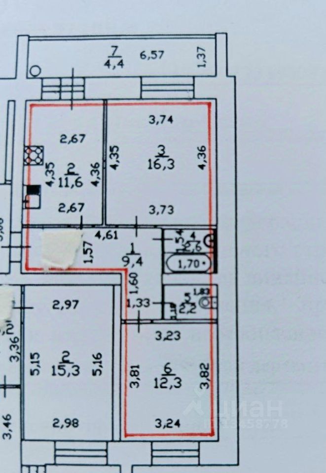 Общая площадь квартиры -58.8 м2, средний этаж по высоте- 4 из 8 жилых этажей, поквартирное отопление.