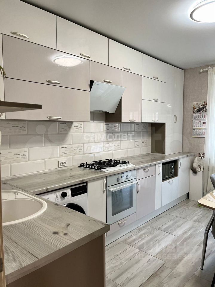 отделка: плитка в санузле, ламинат и кварцвинил в комнатах, ламинат с плиткойна кухне;