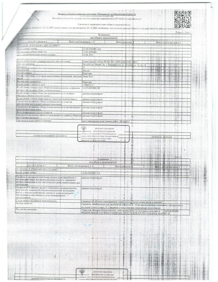 Квартира, площадью 31 кв.м, кад. 12:05:0302001:213, адрес: г.Йошкар-Ола, ул. Зеленая, д.12, кв. 12, должник Колесникова Л.В. (организатор торгов сведениями о зарегистрированных в жилом помещении лицах/ информацией о задолженности должника по взносам на капитальный ремонт не располагает (судебным приставом-исполнителем не предоставлены). Является заложенной в пользу ИП Карандина Д.В.
