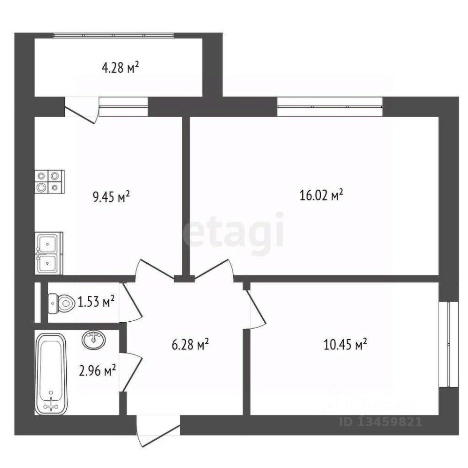 Квартира общей площадью 50,97кв.м .