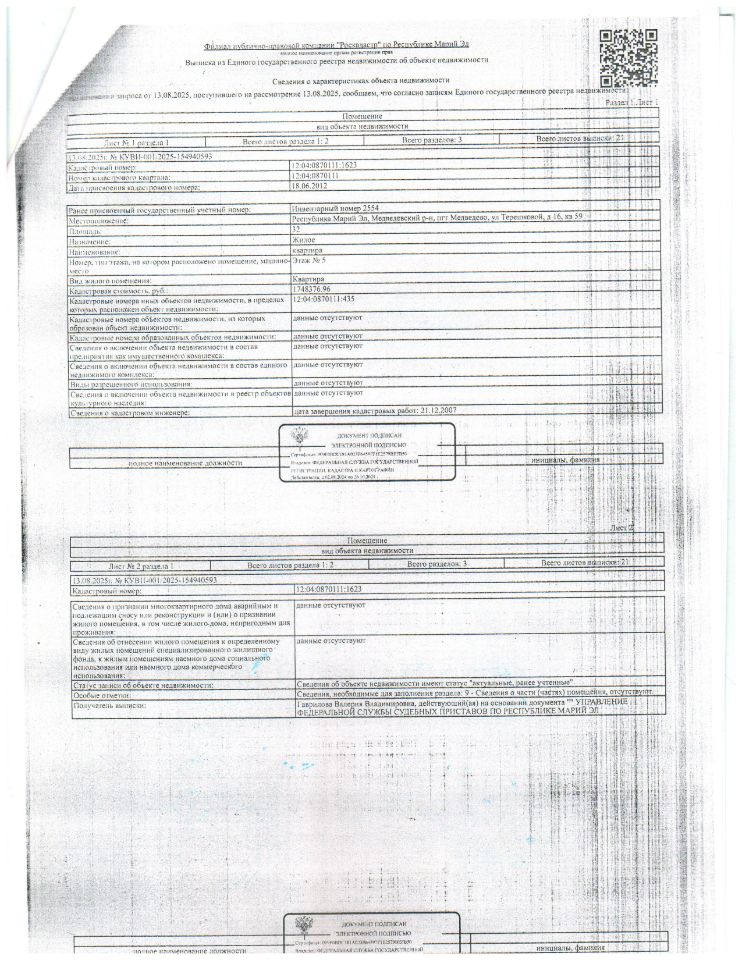 Квартира, расположенная по адресу: Республика Марий Эл, Медведевский р-н, пгт Медведево, ул Терешковой, д 16, кв 59, 32 кв.м, кад. номер 12:04:0870111:1623, принадлежащая должнику Звереву М.А. (организатор торгов сведениями о зарегистрированных в жилом помещении лицах/ информацией о задолженности должника по взносам на капитальный ремонт не располагает (судебным приставом-исполнителем не предоставлены