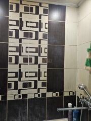 Свежий санузел: Стены и пол выложены современным кафелем, всё выглядит аккуратно и чисто.
