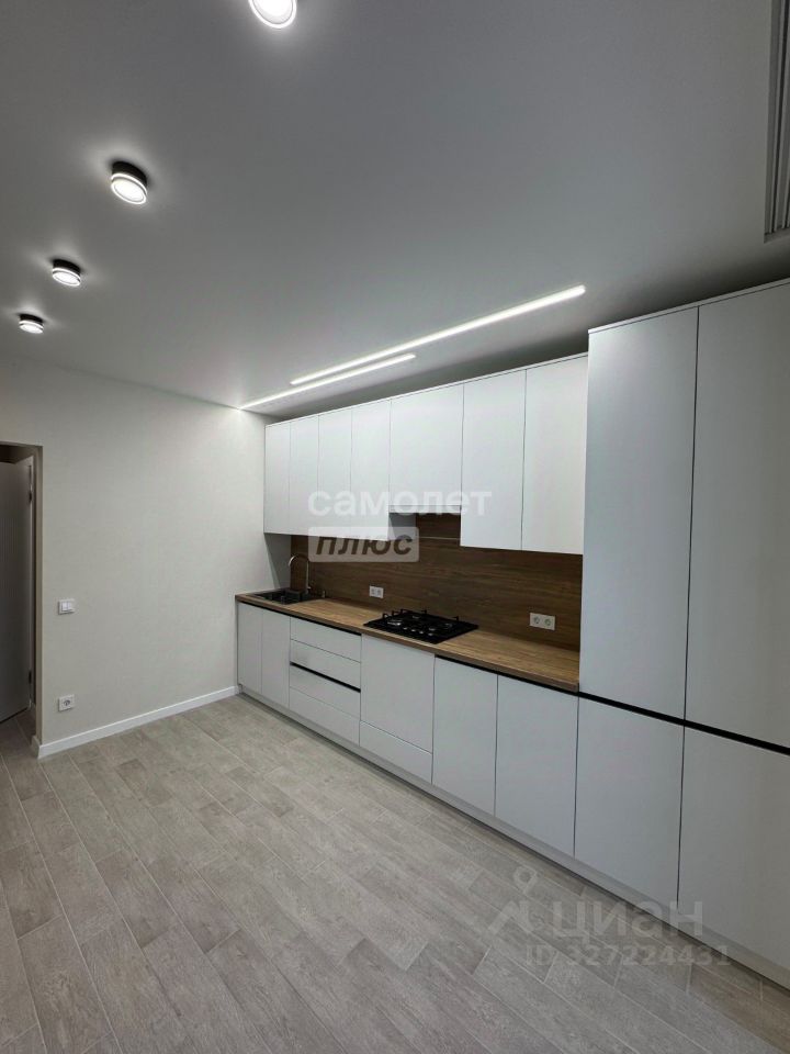 Кухня с подготовкой: газовая варочная панель, вытяжка и мойка уже на месте.