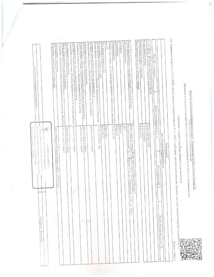 Квартира, 18.4 кв.м, расположенная по адресу: г. Йошкар-Ола, ул. Ломоносова, д. 46, к. 10/17, кад.номер 12:05:0403003:542, принадлежащая должнику Соловьёвой А.В. (организатор торгов сведениями о зарегистрированных в жилом помещении лицах/ информацией о задолженности должника по взносам на капитальный ремонт не располагает (судебным приставом-исполнителем не предоставлены).