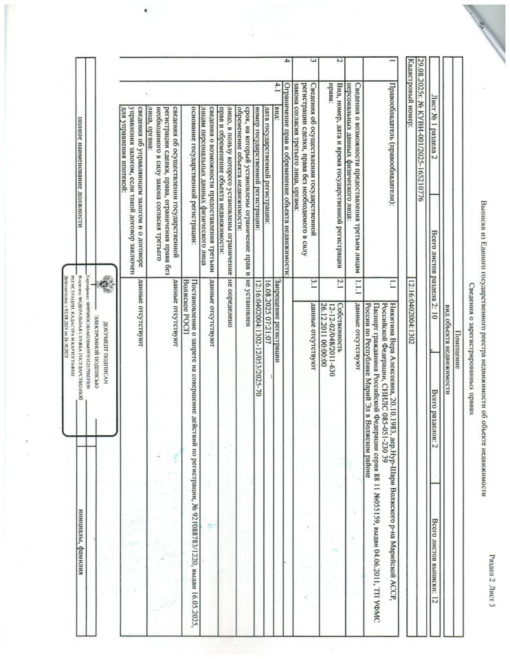 Помещение площадью 17,4 кв.м, расположенное по адресу: РМЭ г.Волжск ул.Дружба д.2б кв.57 кад. 12:16:0402004:1302 , в собственности, принадлежащее должнику Никитиной В.А. (организатор торгов сведениями о зарегистрированных в жилом помещении лицах/ информацией о задолженности должника по взносам на капитальный ремонт не располагает (судебным приставом-исполнителем не предоставлены)
