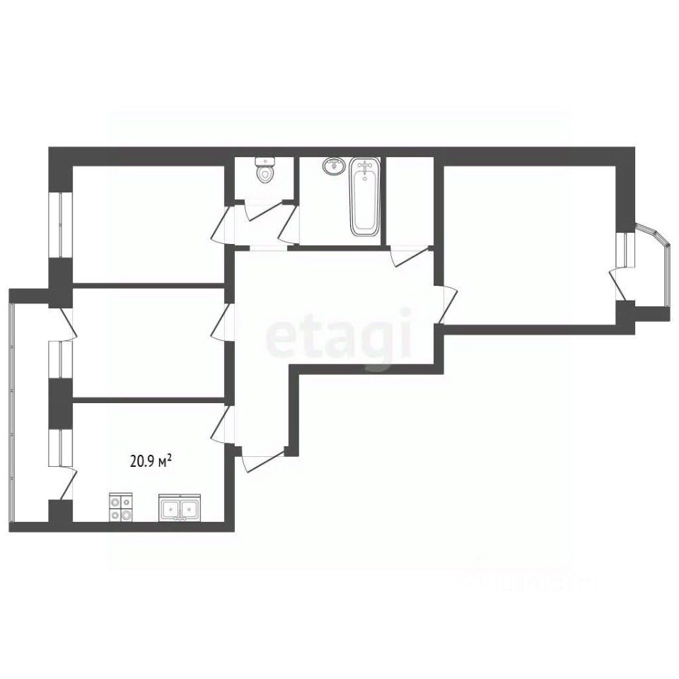 Федеральная компания Этажи предлагает приобрести трехкомнатную квартиру в районе Сомбатхей.